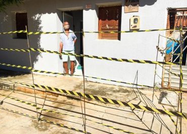 A segurança ainda foi reforçada com um cartaz de papelão fixado na parede com a seguinte frase escrita a caneta: PROIBIDO VISITAS POR CAUSA DO IDOSO.