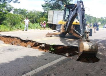 Por conta disso, o tráfego de veículos está ocorrendo em apenas em uma das faixas de rolamento.