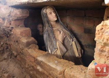Operários encontram imagens enterradas durante obra em igreja no PI