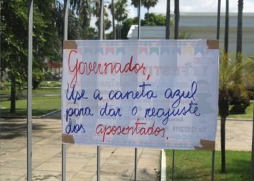 Professores aposentados fazem protesto em frente ao Palácio de Karnak e pedem reajuste