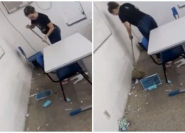 Aluna da UESPI varre sala após greve dos funcionários da limpeza