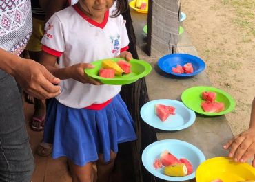 Crianças recebem pedaços de melancia e meia banana como merenda escolar no norte do Piauí