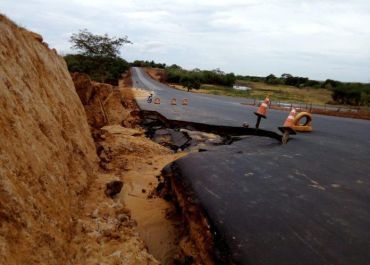Asfalto do alargamento da BR-135 cede com a primeira chuva no PI