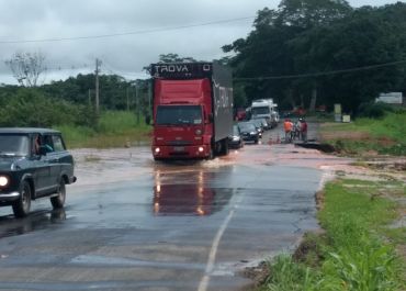 BR-343 fica parcialmente interditada após grande volume de água destruir parte da pista