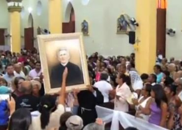 Retrato do "santo popular" foi conduzido por fiéis em igreja de Juazeiro. Evento ocorreu durante a romaria das Candeias, a maior do Ceará.