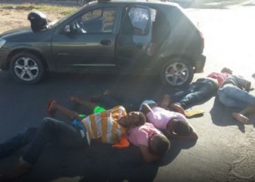 Cinco suspeitos que estavam em um veículo Celta foram denunciados por uma vítima que teve o celular roubado.