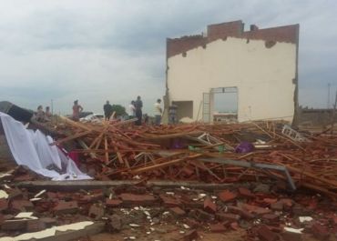 Obreiro da igreja ficou preso entre os escombros e acabou morrendo. Chuva de granizo, relâmpagos e ventos fortes assustou a população.