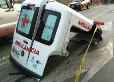 Ambulância que transportava paciente colidiu com caminhão de lixo. Acidente ocorreu em Caucaia, na Grande Fortaleza, neste domingo.