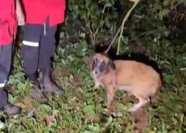 O animal estava com parasitas internos e foi deixado no local para morrer, amarrado no tronco de uma árvore