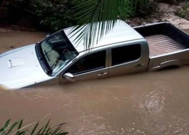 A água dava condições para passagem no Riacho de Pedras, mas uma tromba d’água instantânea tomou todo o veículo