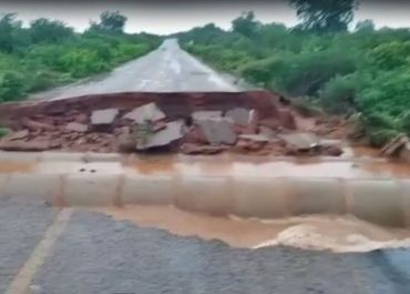 Após fortes chuvas registradas nas últimas horas na região, a rodovia estadual PI-143 rompeu