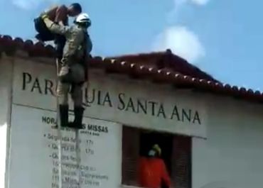 O homem teve um surto psicótico, onde teria adentrado em uma casa que faz parte da Igreja Santana, e foi até o telhado, onde ficou por vários minutos