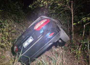 O impacto foi violento. Com a colisão, o Duster capotou fora da rodovia e incendiou.