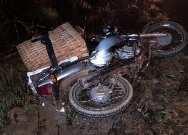 Os dois veículos pararam fora da rodovia e a caminhonete ainda tombou. A motocicleta ficou totalmente destruída