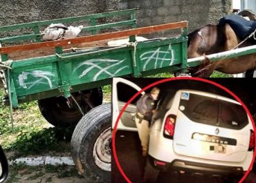 Uma blogueira trafegava em seu veículo na companhia da mãe e da irmã, quando foram surpreendidas por cinco elementos em uma carroça
