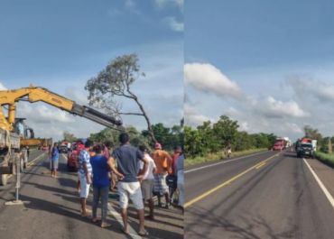 O trânsito na região ficou interditado devido ao acidente, pois os dois veículos envolvidos ficaram sob a via.