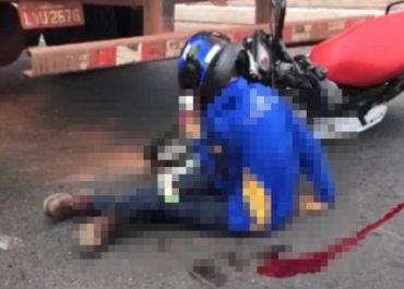 Na queda, o motociclista quebrou o pescoço e veio a óbito ainda no local.