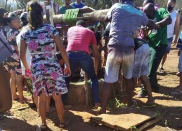 A população tenta ajudar de todas as formas até a chegada do Corpo de Bombeiros