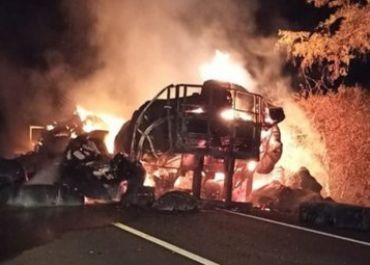 Os bombeiros chegaram no local por volta das 3h10, após as chamas ter consumido todo o veículo e a carga.