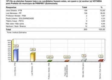 A pesquisa Estimativa foi realizada entre os dias 09 e 10 de outubro, com 300 pessoas na zona urbana e rural de Piripiri