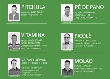 Picolé, Vitamina, Pitchula, Meleco, Pé de Pano, Gambá, Foquito, Chico Tripa, Chuladinho, Molão, Meu Nego e Vai Vai Lucivan estão entre eles