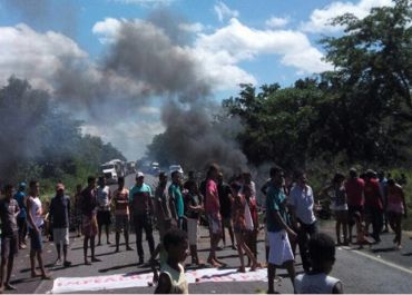 Em manifestos em apoio à presidenta Dilma Rousseff, fogo foi colocado em pneus e madeira para interditar a pista.