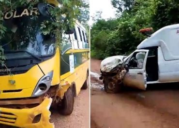 Ônibus escolar e ambulância se chocam em estrada tomada por mato em Murici dos Portelas (PI)
