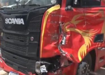 O caminhão estava desgovernado e um popular teve que pular na cabine para jogar o veículo em um canteiro central e evitar um acidente de maior gravidade.