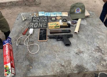 Dentro do veículo os policiais encontraram uma pistola Taurus cal. 38 e mais cinco munições intactas de mesmo calibre