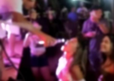 Nos vídeos, um homem que seria vocalista da banda distribuiu bebida alcoólica na boca do público.