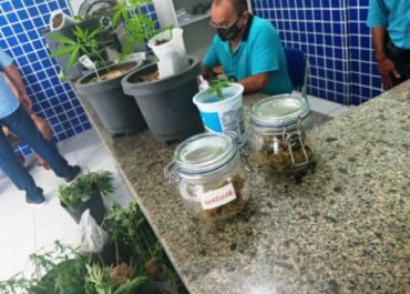 O assistente social foi conduzido à Central de Flagrantes da cidade, onde negou a acusação de tráfico de drogas e afirmou que plantava a erva para consumo próprio.