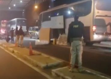 Durante a abordagem, os policiais contaram com o auxílio de cães farejadores.