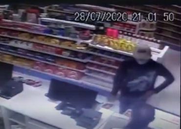 O casal filmou os três assaltantes com máscaras e sem máscaras e o momento em que roubaram duas TVs do estabelecimento comercial.