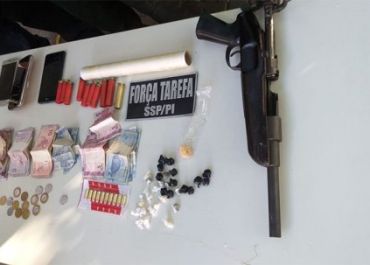 Com o trio, a equipe da Força Tarefa também aprendeu 10 papelotes de crack, uma porção de maconha, R$ 600 e munições de revólver calibre 38.