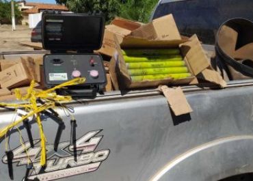 Os policiais realizaram a abordagem e durante a revista, foi encontrado no veículo diversos materiais explosivos sem a devida licença