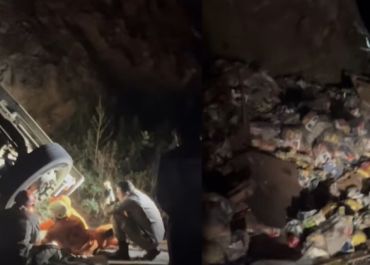 Caminhão carregado de cesta básica tomba na ladeira de Tucuns, entre Piauí e Ceará