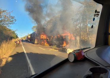 Caminhão carregado com algodão tomba e pega fogo no Piauí
