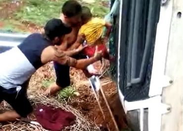 Três pessoas ficam feridas após caminhão tombar em abismo na BR-316