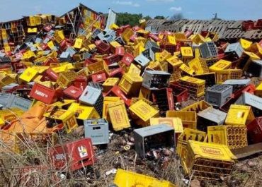 Carreta carregada de cerveja tomba na BR-343 após a barra da direção se soltar