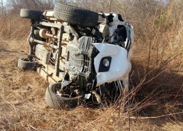 O veículo modelo Hilux em que estavam ficou destruída