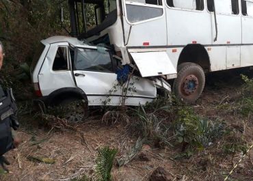 O Fiat Uno concluía a curva quando colidiu frontalmente com o ônibus
