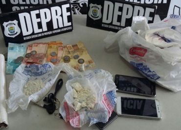 Os policiais apreenderam 100 gramas de cocaína, balança de precisão, duas motos e R$ 470 em espécie