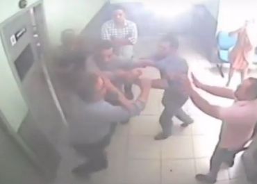 No vídeo é possível ver que, em determinado momento, o delegado se altera, bate na mesa e põe a mão na arma