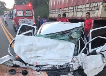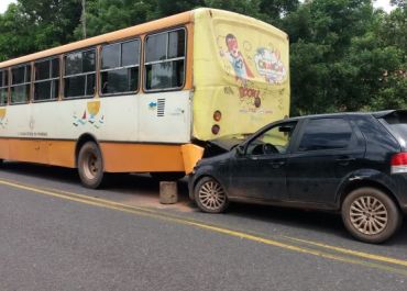 O coletivo estava no acostamento para o desembarque de uma pessoa e voltava para a rodovia quando foi atingido pelo carro, que ficou engavetado na traseira de um ônibus