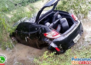 Chovia bastante na região, o que deixou a pista escorregadia. O carro era ocupado por duas pessoas.