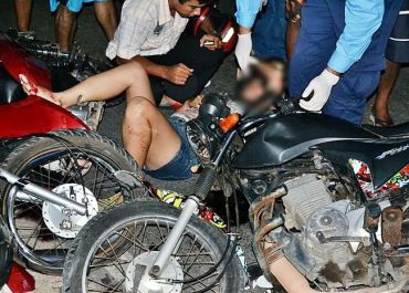 O condutor de uma das motos ficou desacordado após sofrer uma forte pancada na cabeça.