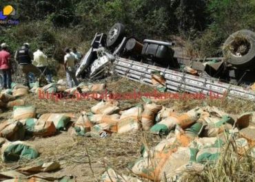 O acidente aconteceu após um caminhão carregado com cimento capotar e cair numa ribanceira.