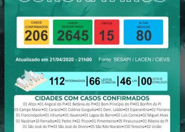 Logo mais, a Secretaria de Estado da Saúde do Piauí (Sesapi) vai divulgar o novo boletim epidemiológico, com informações atualizadas da Covid-19 no Piauí.