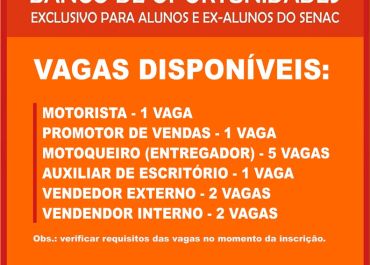 SENAC Campo Maior cria o Banco de Oportunidades para empregos. VEJA AS VAGAS