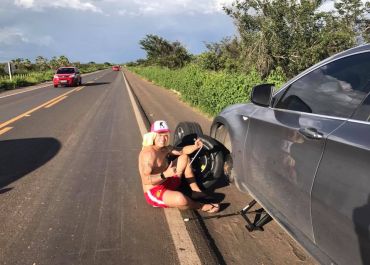 “Estou fazendo uma experiência. Me preparando para investir em food truck”, contou. “Fico bebendo minha cachaça e vendo esse visual da praia”, explicou.